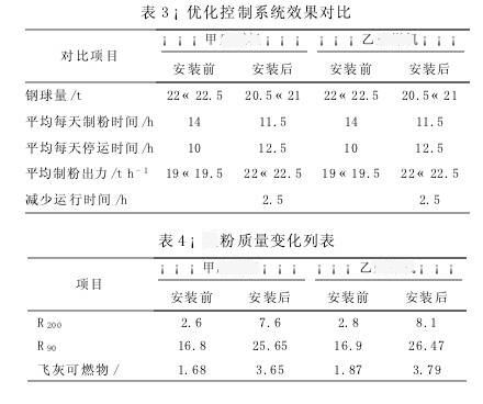 本文所設(shè)計(jì)的制粉優(yōu)化控制系統(tǒng)已成功應(yīng)用于河南豫暉礦山機(jī)械有限公司5號爐制粉系統(tǒng)。該系統(tǒng)投入使用后取得明顯效果,制粉系統(tǒng)出力(2臺球磨機(jī))平均提高了6 t/h。與未使用前的同負(fù)荷水平相比,提高制粉出力15%。投入自動控制后,制粉系統(tǒng)持續(xù)穩(wěn)定運(yùn)行,杜絕了球磨機(jī)堵粉和空球磨機(jī)運(yùn)行現(xiàn)象,增加了整個制粉系統(tǒng)運(yùn)行的安全性。制粉系統(tǒng)安裝優(yōu)化控制系統(tǒng)前后運(yùn)行對比見表3i。安裝制粉優(yōu)化控制系統(tǒng)后,磨粉細(xì)度提高,磨粉均勻性指標(biāo)n值約為0。8,飛灰可燃物指標(biāo)在2%~4%以內(nèi)。經(jīng)過一段時間運(yùn)行后,鍋爐燃燒狀況良好,各項(xiàng)污染物指標(biāo)均正常。安裝前后數(shù)據(jù)對比見表4i。