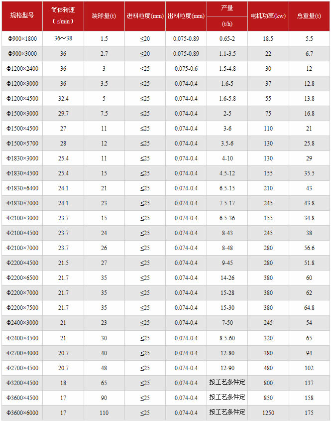 鐵渣球磨機參數(shù)表: